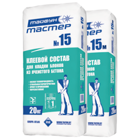 Клеевой состав Тайфун Мастер № 15М (морозостойкий) применяется при устройстве стен и внутренних перегородок из блоков из ячеистого бетона, пенобетонных, керамзитобетонных и газосиликатных блоков. Также предназначен для заполнения раковин, сколов, трещин и других дефектов материала.